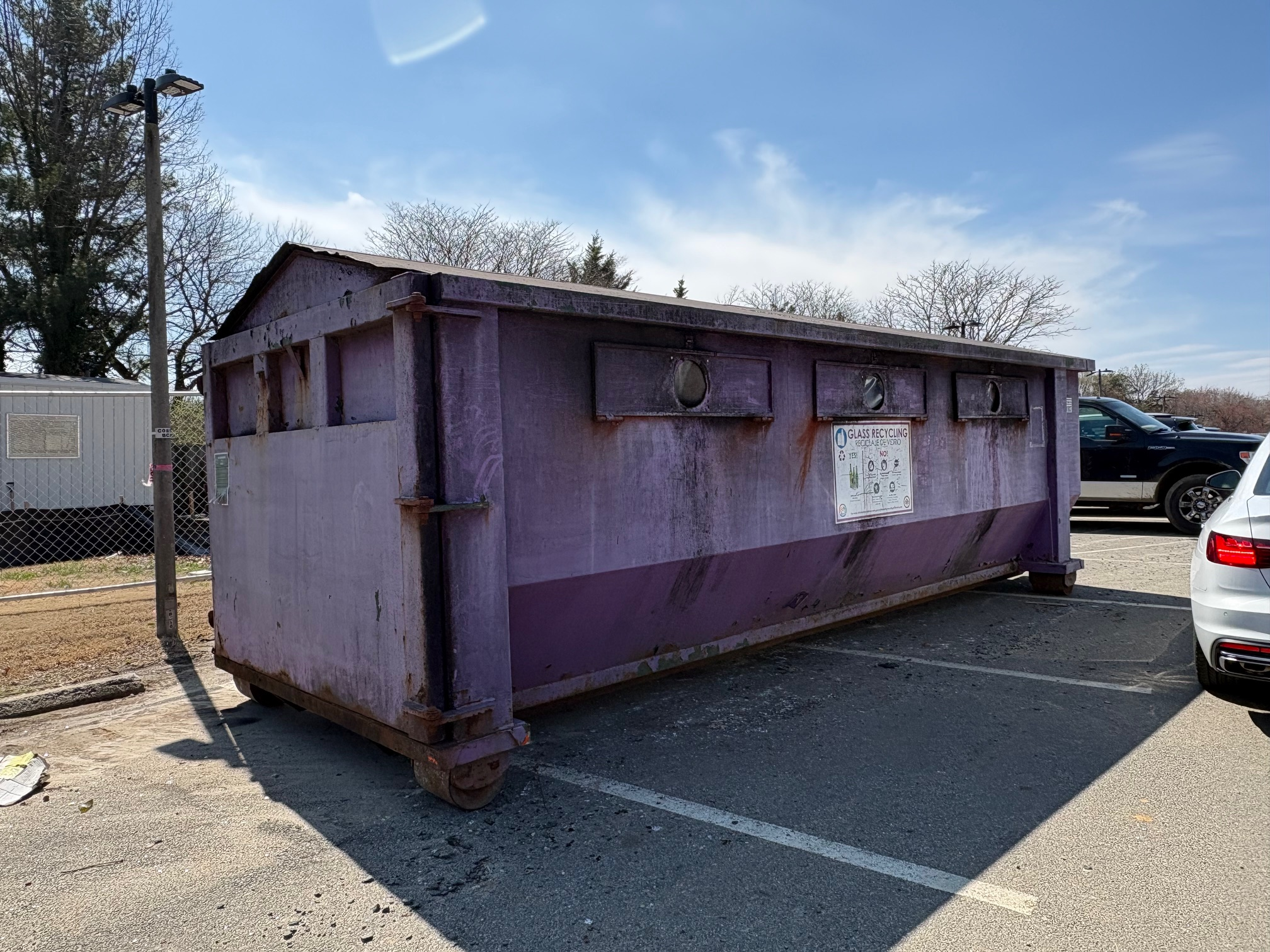 Purple glass recycling bin will be removed
