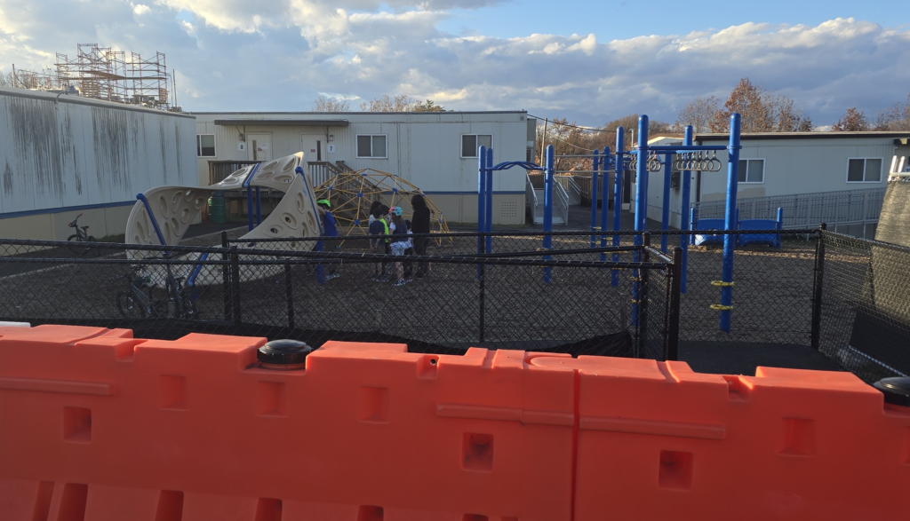BMP is temporarily overcrowded due to an ongoing renovation and expansion project. As a result, all third-graders and some administration offices are in trailers, there are no athletic fields, and parking is limited.