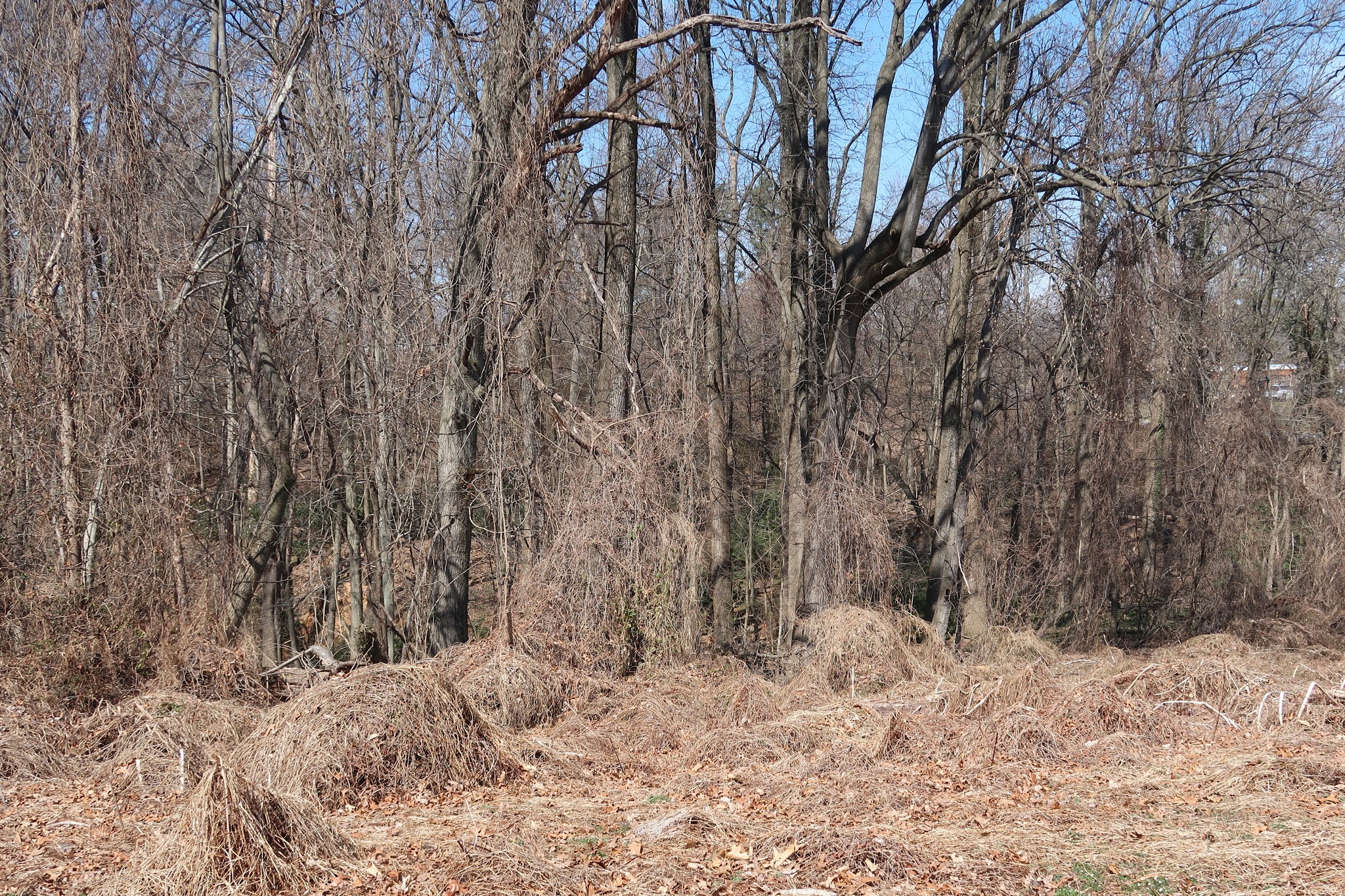 Although overgrowth in the park is something that the Park Authority has long tolerated. Significant areas are choked with vines; whole mature trees are engulfed and overwhelmed. Fifteen years ago when I was an officer on the board of a nearby neighborhood association, during a site visit with a Park Authority official, what seemed to me to be a common sense request to have a huge stand of poison ivy near playground equipment removed was dismissed out of hand because poison ivy is native and therefore desirable, we were told. Invasive vines are indeed being removed now, and that is thanks to the ongoing efforts by dogged neighborhood volunteers for the last 15 years.