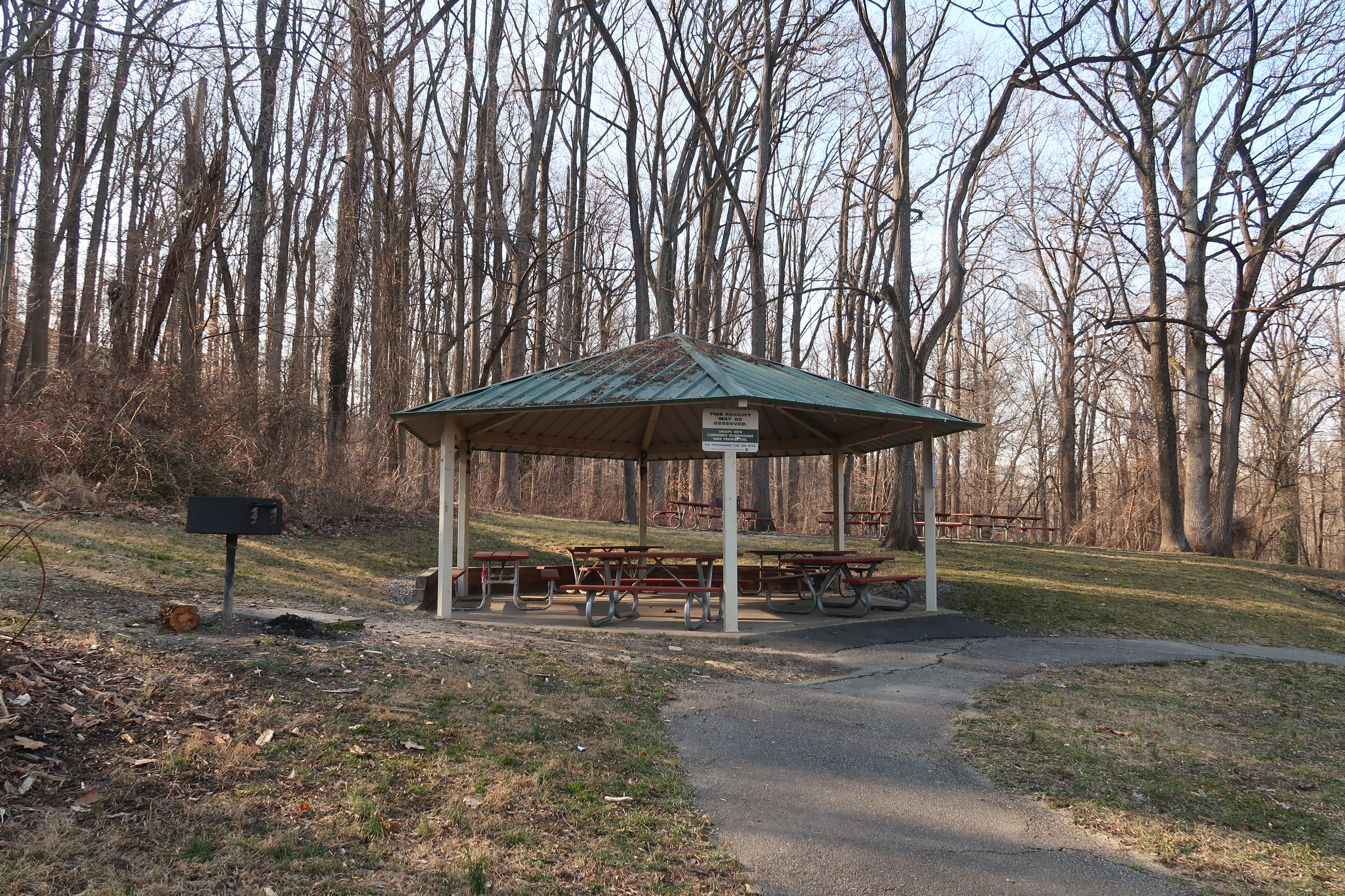 Features: There is a playground, trails, picnic shelter, baseball field with an overgrown backstop, and an open field. The park is adjacent to Turkeycock Run Stream Valley Park and the Bren Mar Recreation Association with a swimming pool and tennis courts.