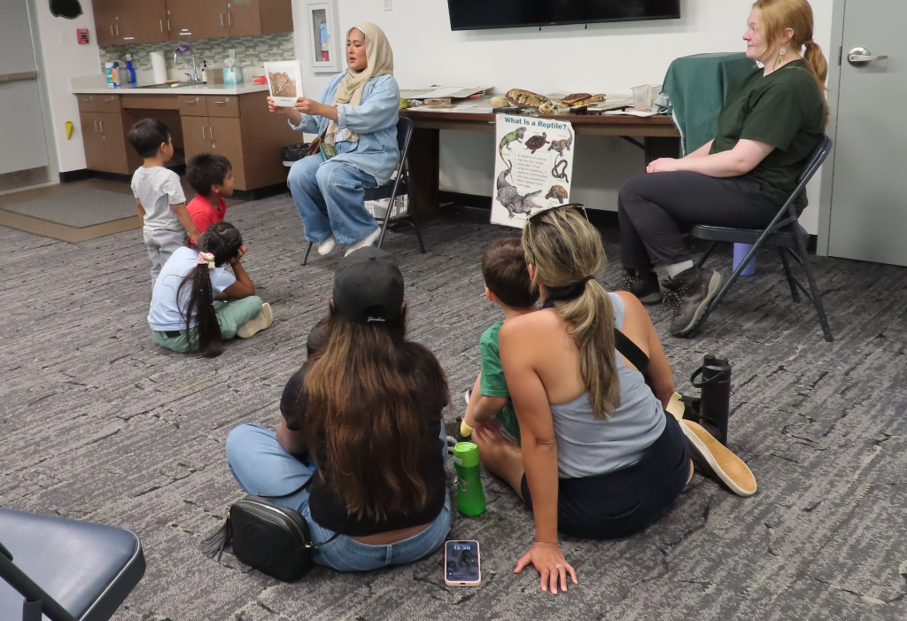 Kids and their parents learned about frogs and toads at the Hidden Oaks Nature Center. They painted sunflowers and made greeting cards and paper hats at the Packard Center with volunteers from the Artisans United Craft Gallery. They also played games and enjoyed lunch in the park.
