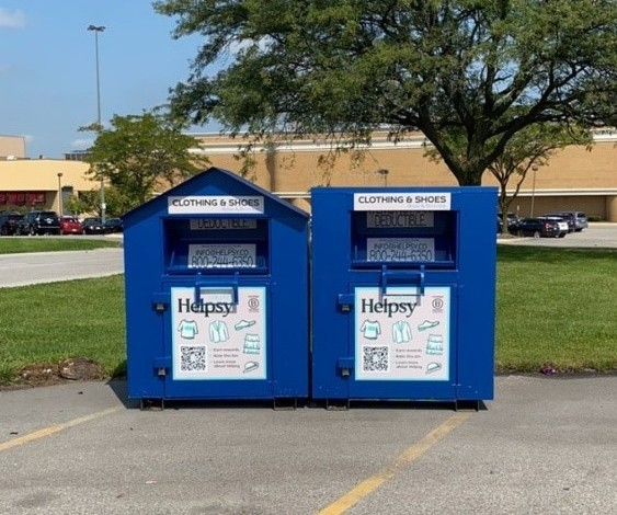 Residents can drop off clothing, shoes, and household textiles in blue Helpsy bins.