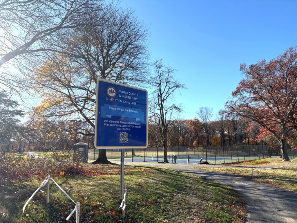 In an email to residents, FCDOT Director Steverson said the agency received a petition from the Ravenwood Park community in 2016 requesting a sidewalk on the park side of Peace Valley Lane. At that time, Fairfax County Public Schools claimed they couldn’t build a sidewalk next to Justice High School because that land is sloped.