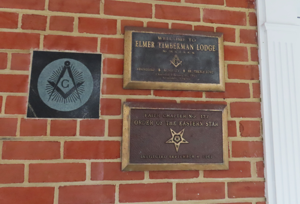 According to the Masonic Lodge’s website, the lodge was founded after “a number of Masons who regularly patronized the little 10′ x 10′ post office located in Joe Mettaurer’s filling station” petitioned the Grand Lodge of Virginia to establish a new outpost in Annandale.