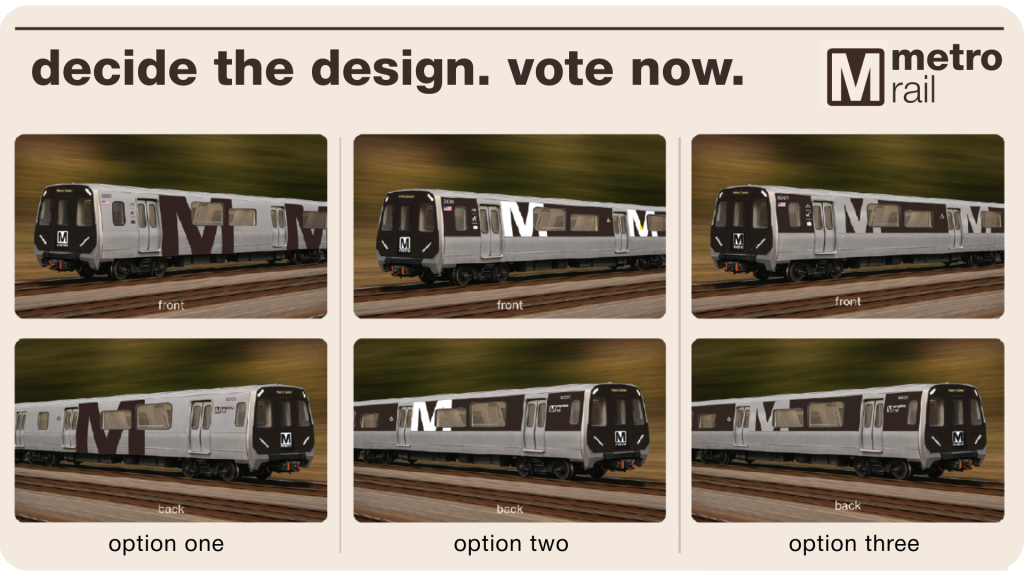 Metro is asking the public to pick their favorite design for the exterior of the new 8000-series rail fleet.