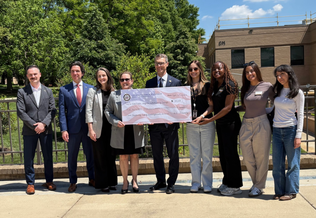 Rep. James Walkinshaw presented a check for $500,000 in federal funds to Northern Virginia Community College for infrastructure improvements at the Annandale campus.