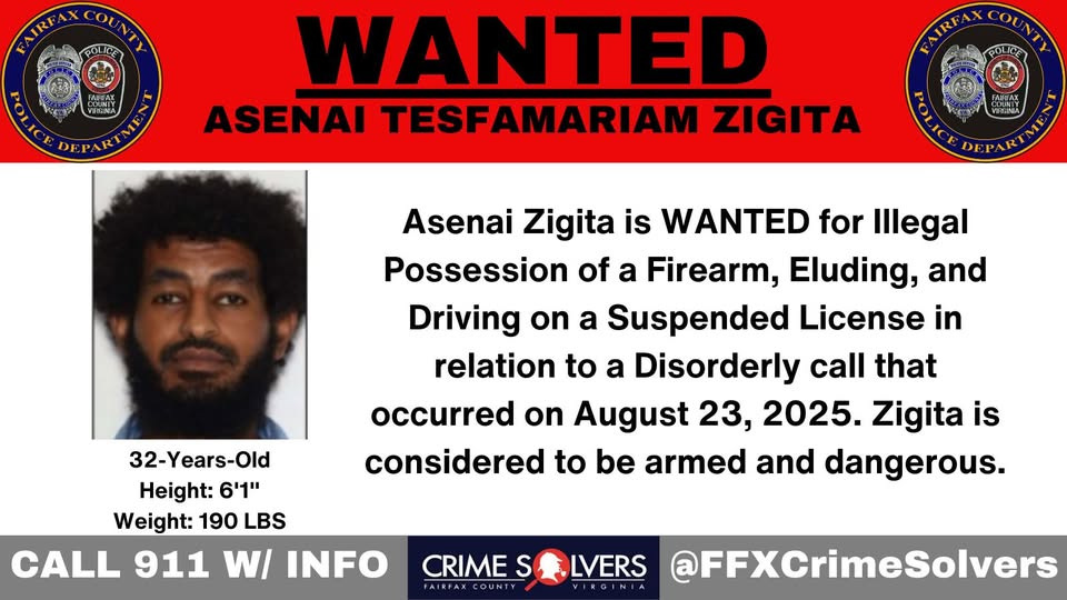 The police department put out a notice on Aug. 27 stating Asenai Tesfamariam Zigita was wanted for Illegal Possession of a Firearm, Eluding, and Driving on a Suspended License.