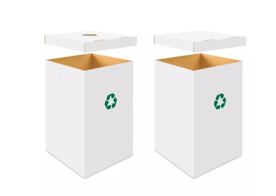 There will be up to 20 white recycling bins throughout the site to collect plastic water bottles and aluminum cans.