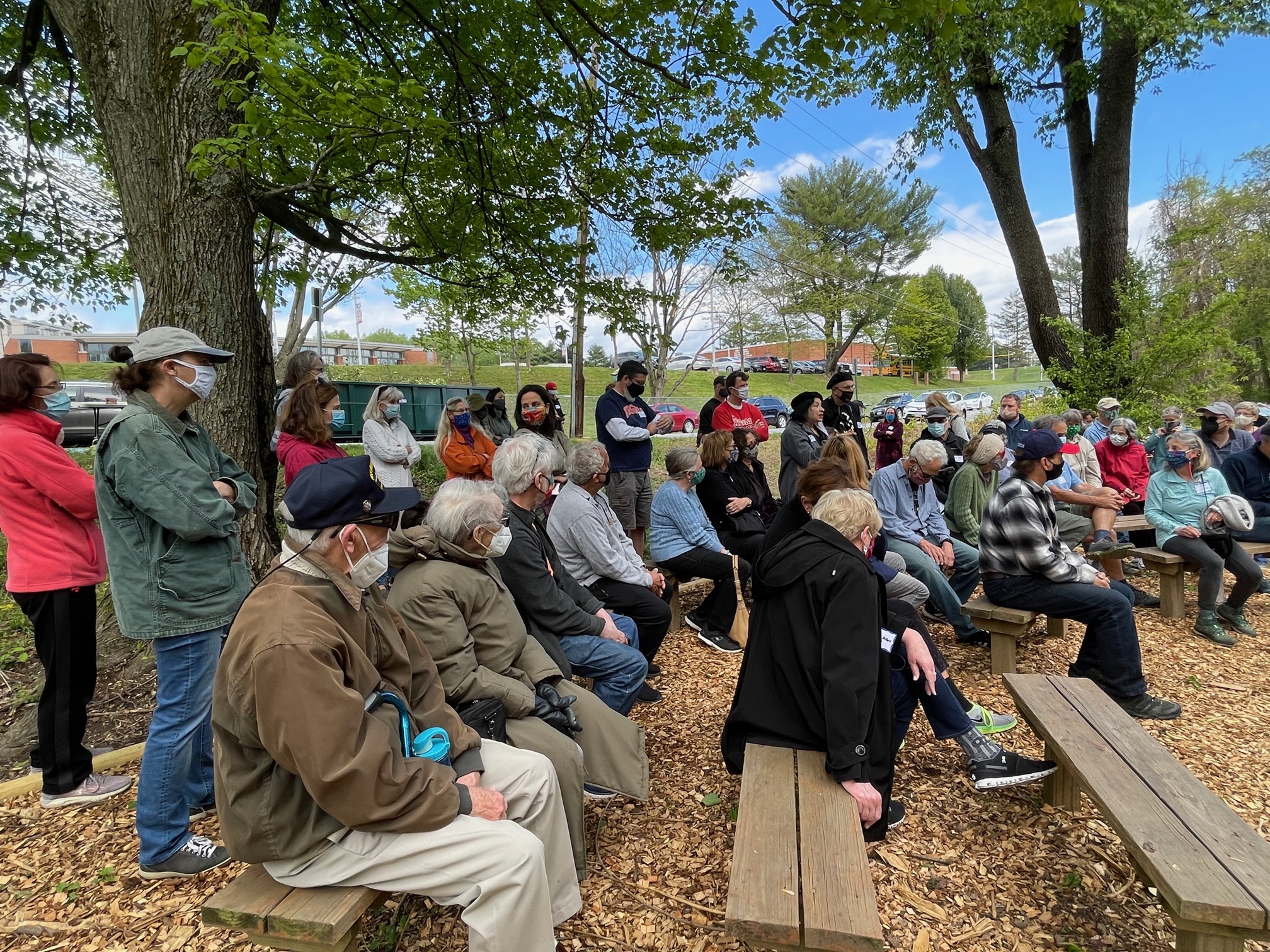 | A meeting on a proposed parking lot in Justice Park was held in the park’s outdoor classroom. |