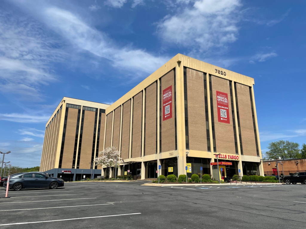 The proposal calls for transforming the six-story office building at 7620 Little River Turnpike to residential uses. An outdoor amenity space would be added on the second floor over the existing surface parking lot. The exterior walls would be replaced with a more updated, residential-appropriate skin.