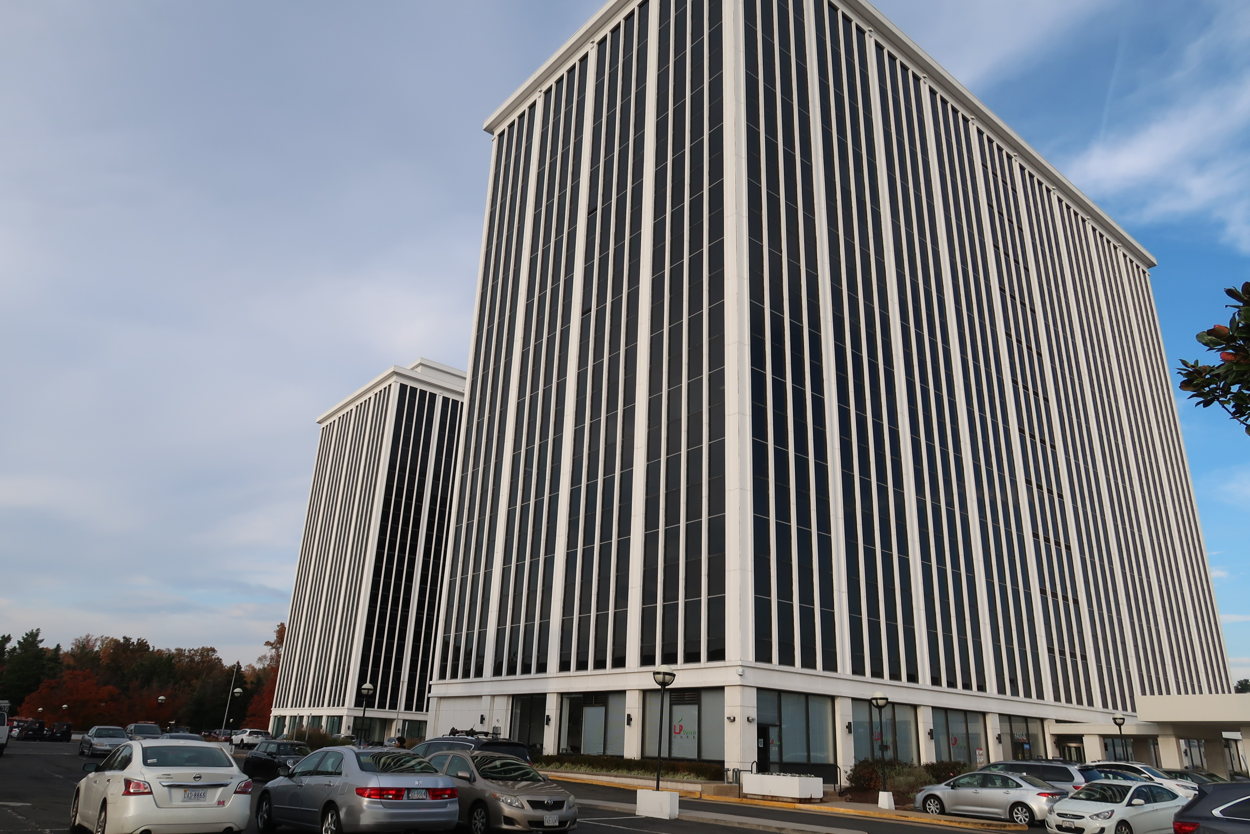 The two 13-story office buildings at 6400 and 6402 Arlington Boulevard in Seven Corners are being renovated and have been rebranded as “Lookout 6400.” BoundTrain Real Estate acquired the buildings in 2019 for $38 million.