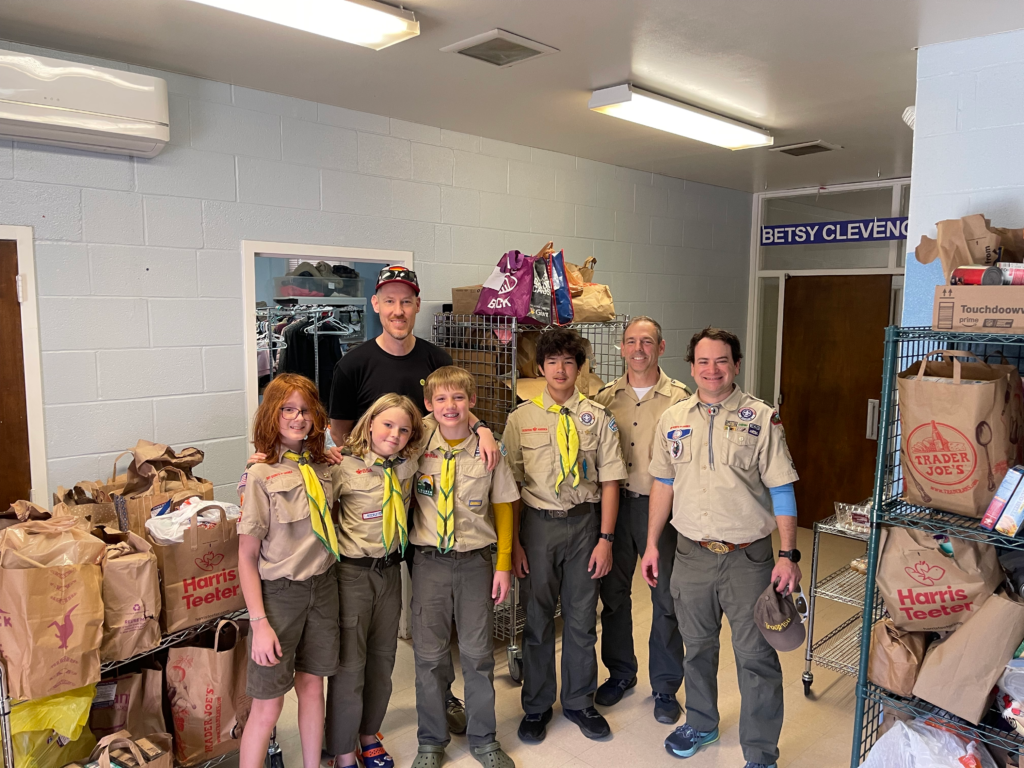 This year’s drive involved 114 Scout participants, 52 adult volunteers, and 547 combined hours of community service for planning, setting up, distributing stickers, collecting food, and stocking pantries. They collected a total of 676 bags.