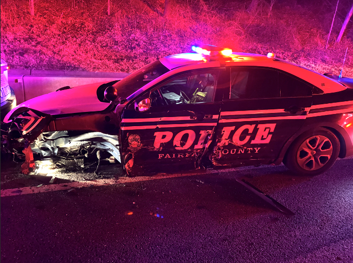 While officers were conducting field sobriety tests, a second vehicle, driven by Edwin Guzman Aguilar, 21, of Bealeton, Va., struck two marked Fairfax County Police cruisers that were stopped on the shoulder. No injuries were reported.