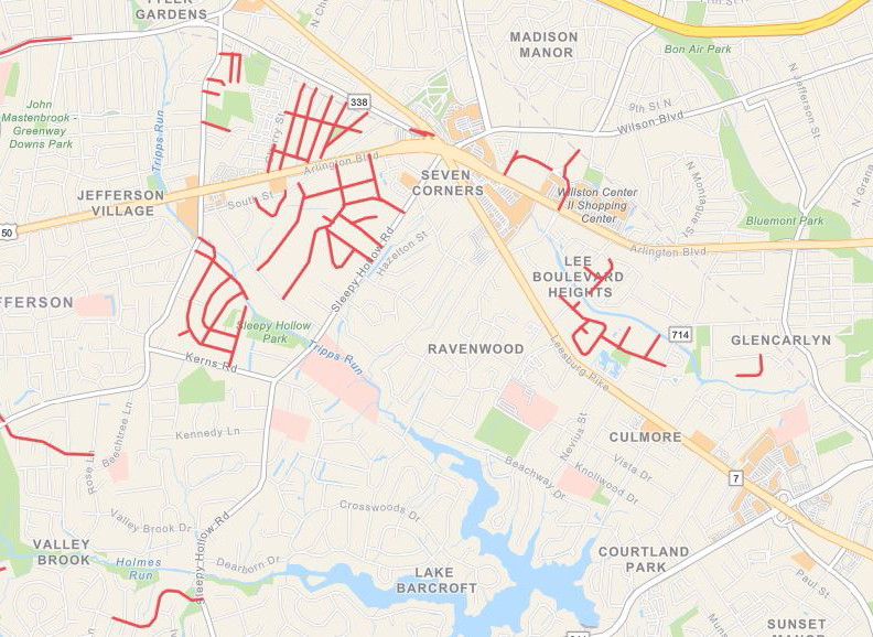 pretty much the length of sleepy hollow got repaved a few years back. Before it was repaved, it was 3rd world bad. It is no where near that bad now even in its roughest spots. Hopefully VDOT doesn’t let it get that bad again, but I doubt they will repave until after the planned sidewalk and utility work has been done, which doesn’t start until next year if I recall.